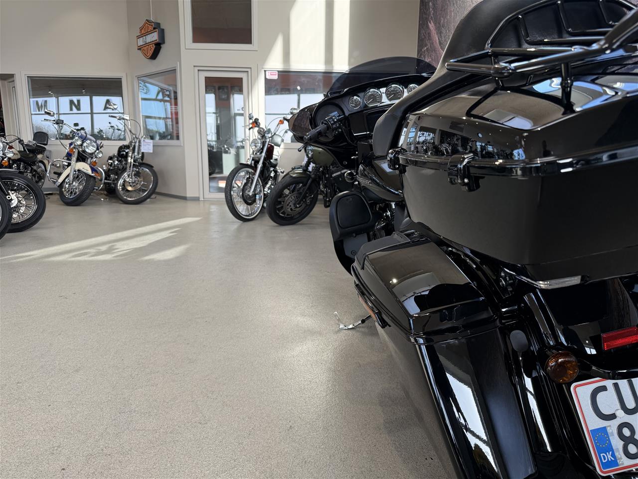 Her får du en gennemført Street Glide Special i den klassiske "Vivid Black" blanksorte original lakering fra Harley-Davidson, som passer perfekt til den "Blacked-Out" motor, hvor alle motor dæksler, udstødning, forgaffel osv. er lakeret sort fra fabrikken af.