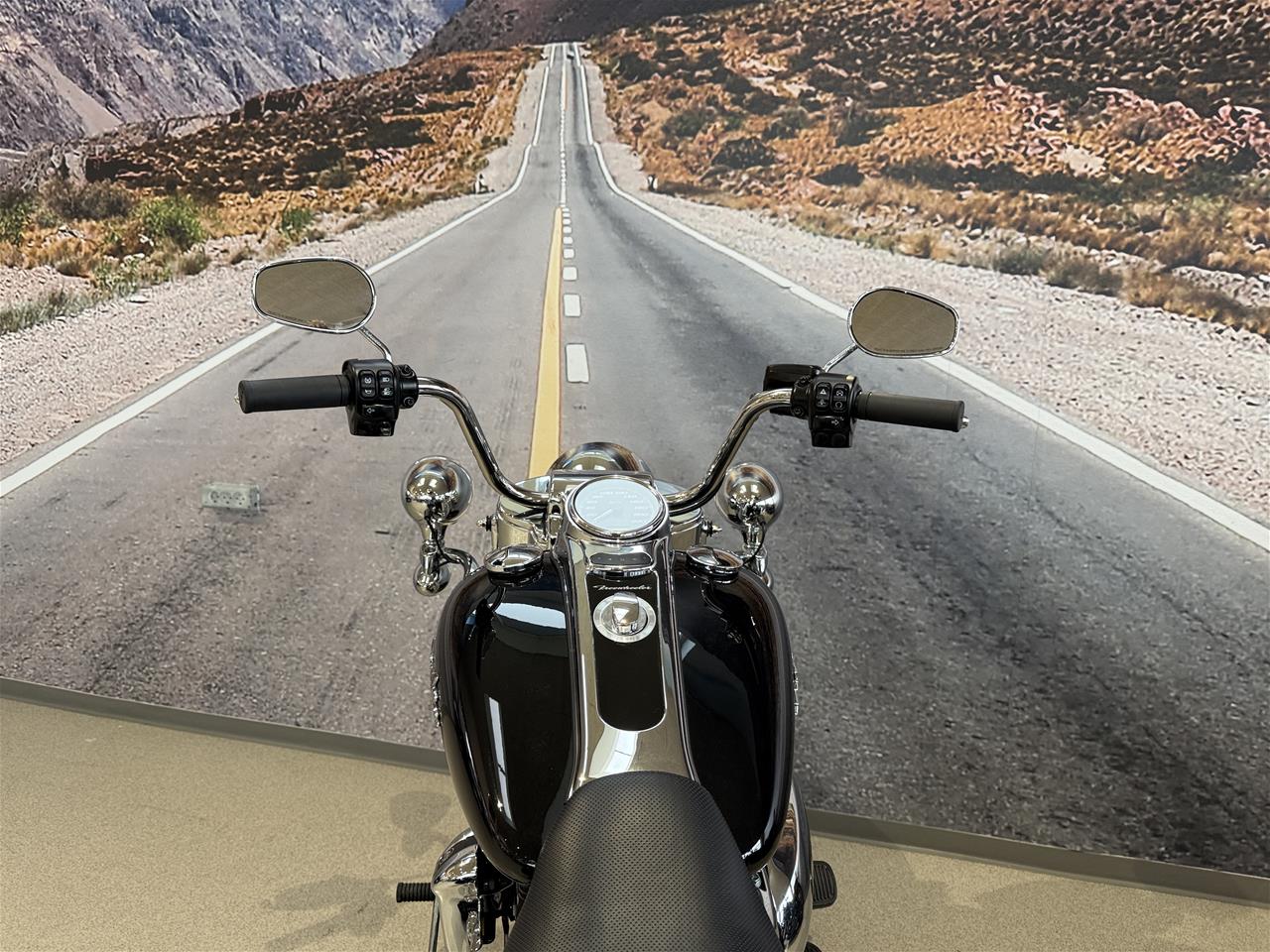 Denne Freewheeler er i den utrolig flotte originale "Vivid Black with Pin Stripe" fra Harley-Davidson, som bare passer perfekt sammen med alle krom delene, den grå detalje i lakeringen og det "Old School" tanklogo!