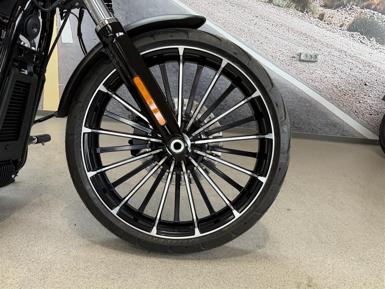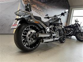 Breakout modellen er kendt for dens aggressive og rå udseende fra fabrikken af, med det brede 240mm baghjul og turbine fælge. hertil med den store 117" Milwaukee-Eight motor, der leverer det fedeste optræk!