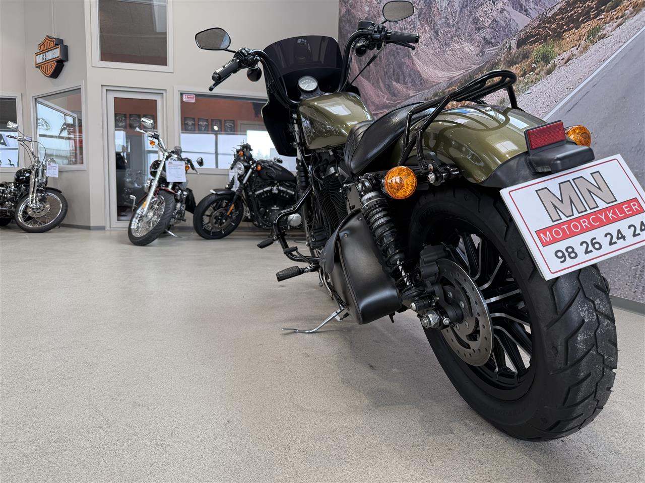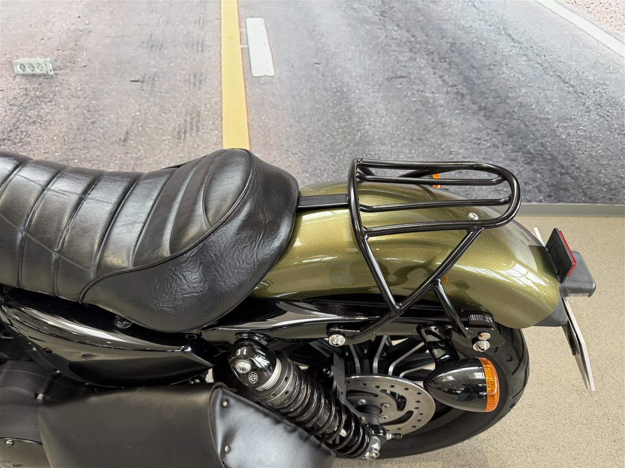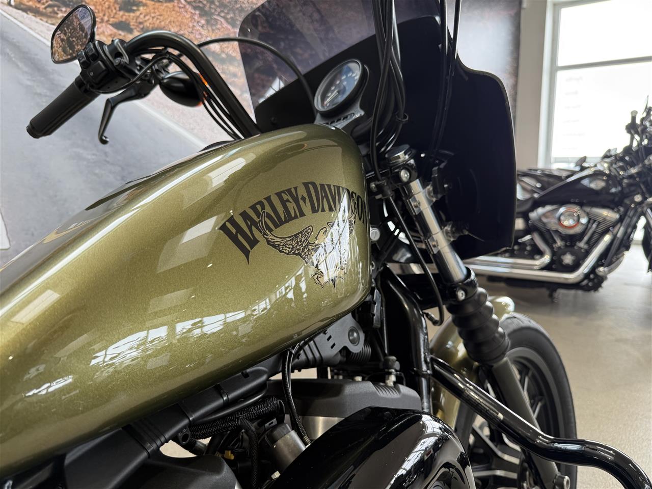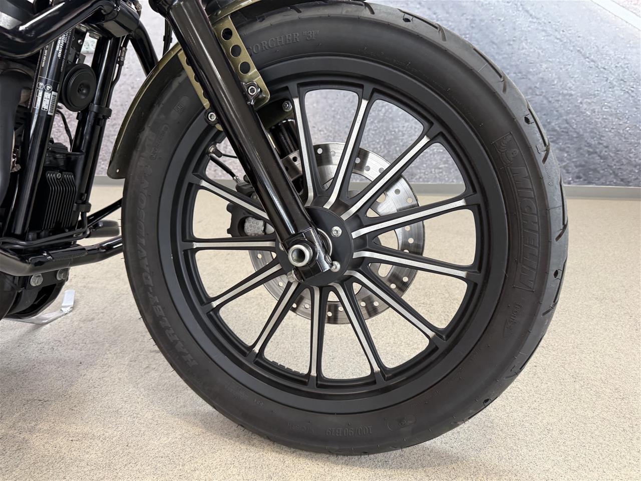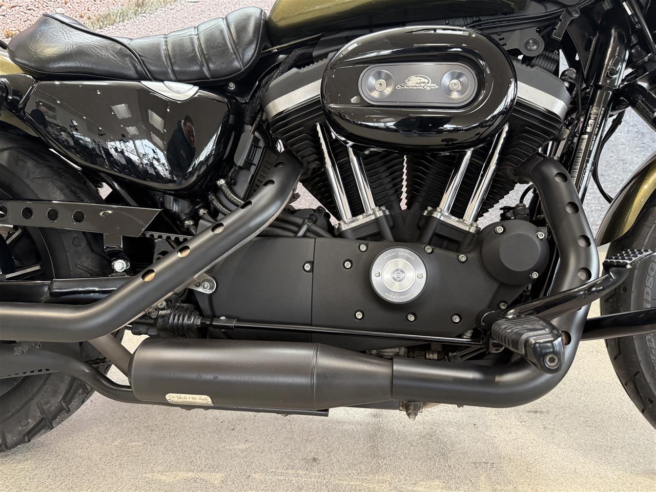 Denne XL 883 N, Iron er lakeret i den originale "Olive Gold" lakering, som passer vildt godt til Iron modellen med alle de sorte detaljer!
