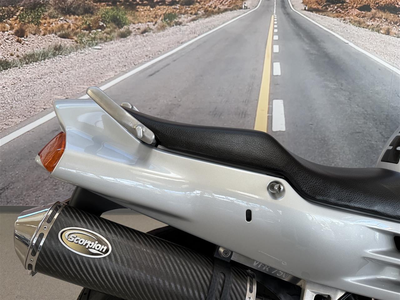 Her får du en Honda VFR 750, hvor der er monteret en del ekstra udstyr, for at øge køreoplevelsen.