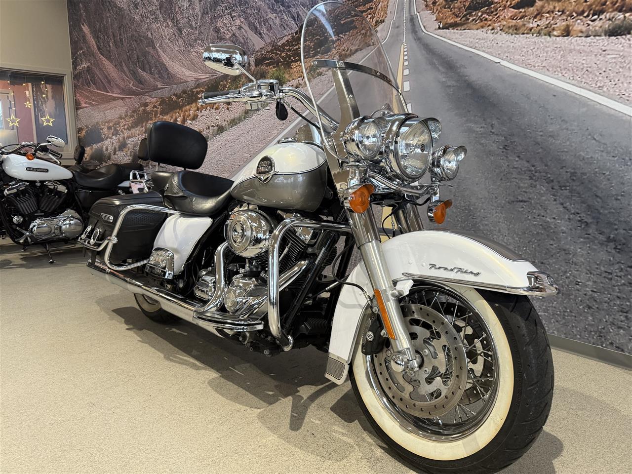Utrolig flot og velholdt FLHRC Road King Classic med ABS i den flotte "White Gold Pearl" 2-Tone lakering, med en ekstrem lav km-stand på kun 16.800 km fra ny!