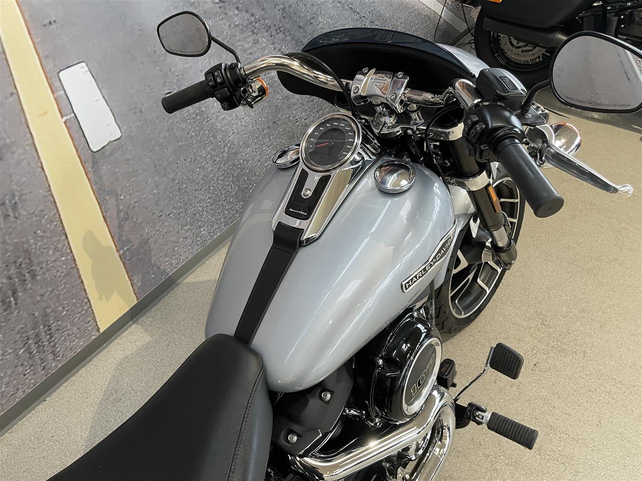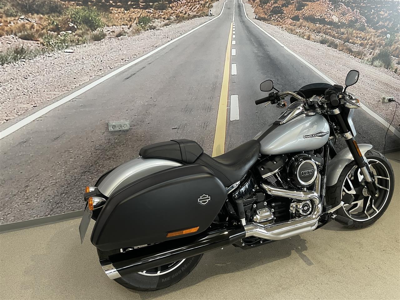 Denne FLSB Sport Glide kommer i den originale lakering "Barracuda Silver", som virkelig får motorcyklen til at fremstå flot & elegant.