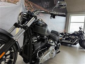Breakout modellen er kendt for dens aggressive og rå udseende fra fabrikken af, med det brede 240mm baghjul og turbine fælge. hertil med den store 117" Milwaukee-Eight motor, der leverer det fedeste optræk!