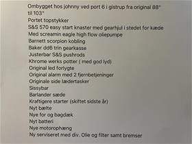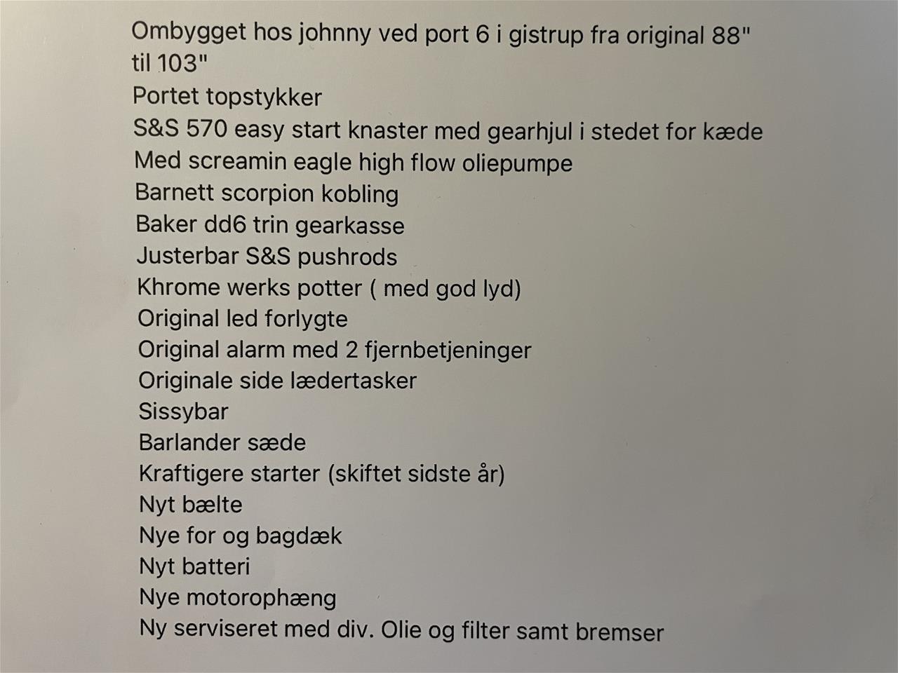 Motorcyklen er optimeret med 103" kit, 6-trins Baker gearkasse og meget andet, hvilket gør at den har samme motorkraft, som de nyere modeller. Denne ombygning er udført på det tidligere autoriseret Harley-Davidson værksted "Port 6".