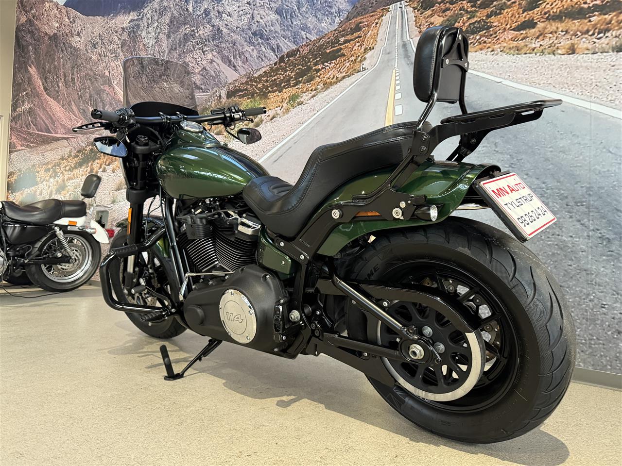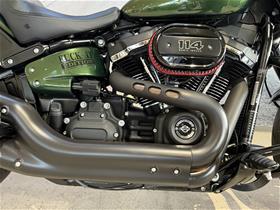 FXFBS Fat Bob 114" modellen er en utrolig rå og muskuløs model fra Harley-Davidson, som er kendt med dens brede LED forlygte, opgraderet Up-Side down forgaffel samt dobbelt skivebremser foran.