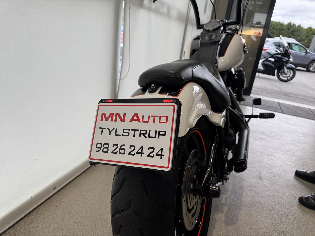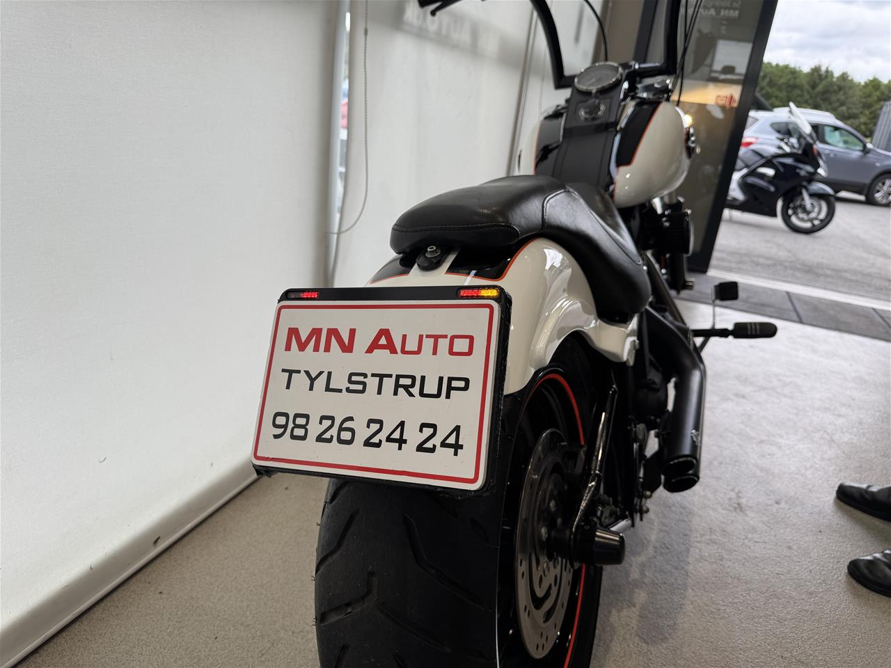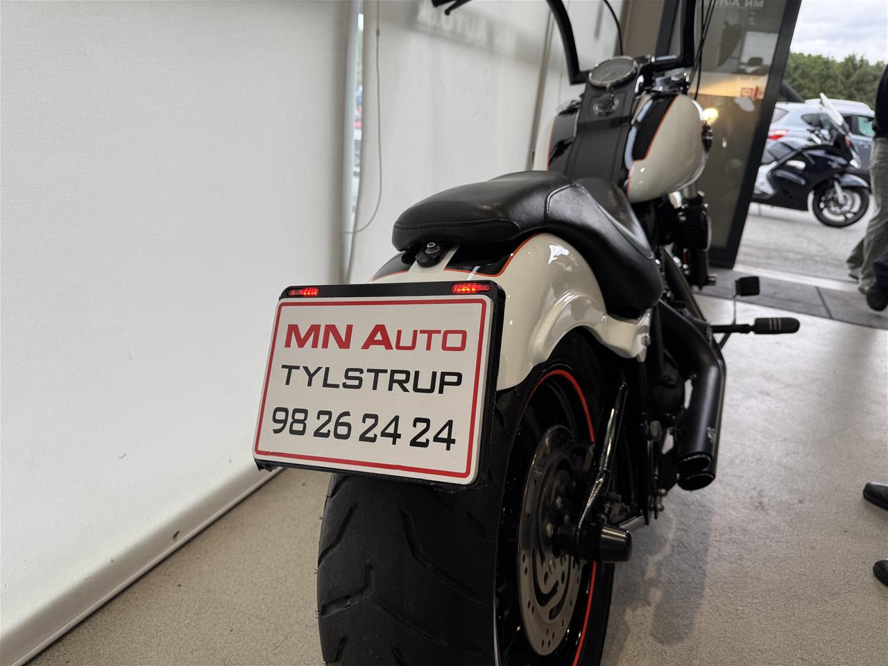 Vi har netop fået den custom lakeret gennem anerkendt autolakerings firma, så motorcyklen står helt skarpt, samt monteret DMP nummerplade ramme!