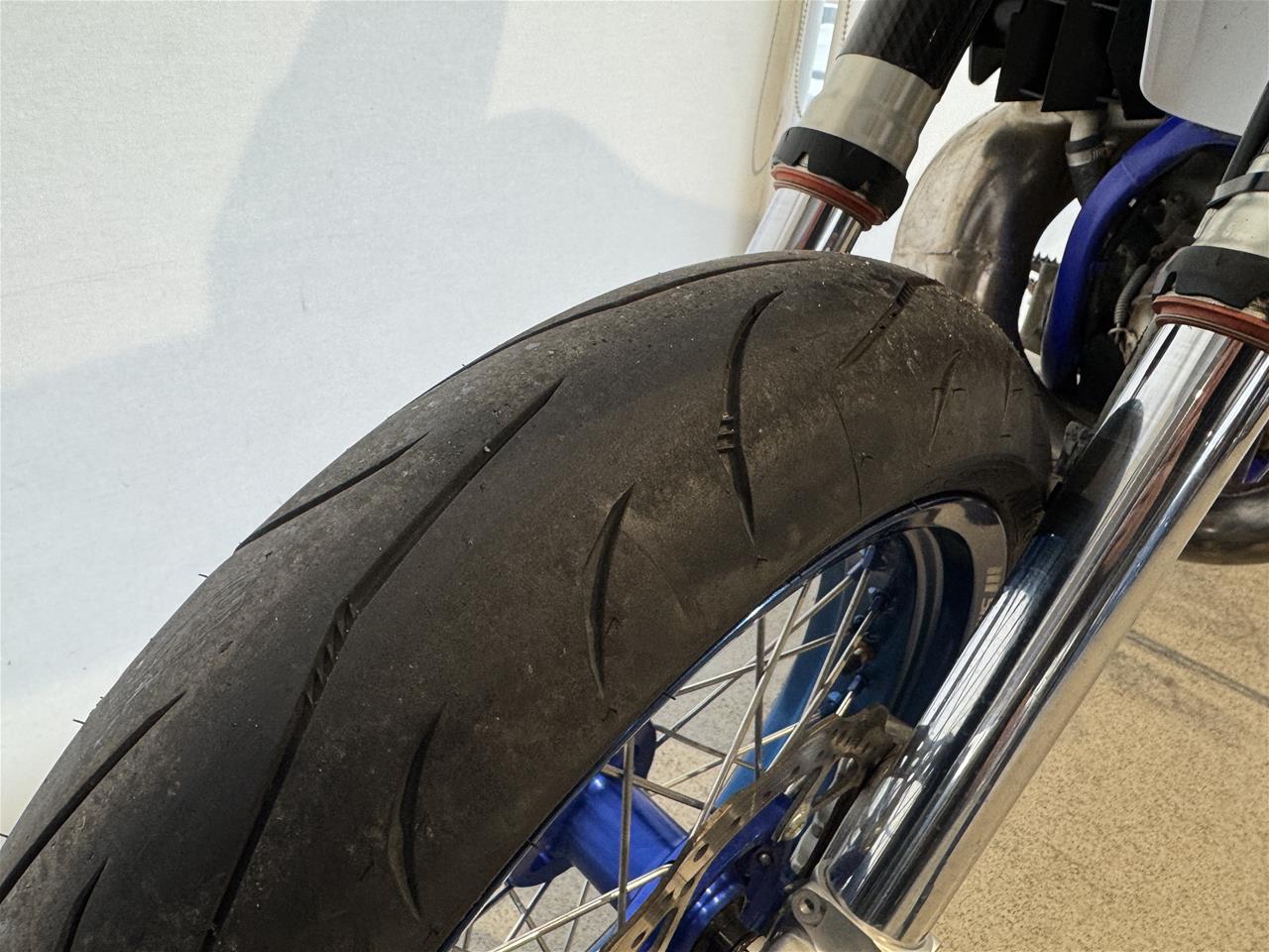 - SM-Pro Motard-hjul med blå fælgring og nav, nærmest nye